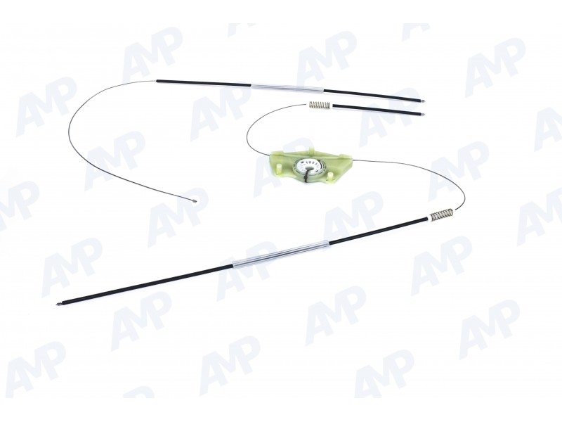 Kabels Reparatieset voor Raammechanisme - Voordeur Links (Britse passagierszijde). Bevat een set kabels met connectoren en een katrol (wiel) zoals op de foto. Geen clips.